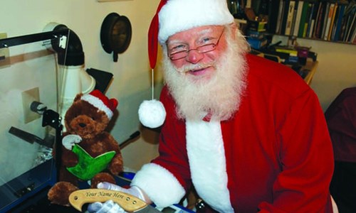 Santa Jerry Crafts Personalized Saws for Volunteers