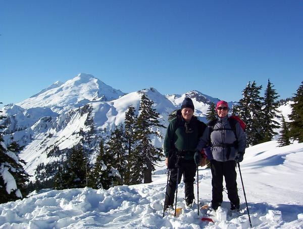 In winter, the Bagley Lakes Loop and Chain Lakes trail creates an intermediate snowshoeing opportunity near the schussing skiers in the Mount Baker Ski Area.