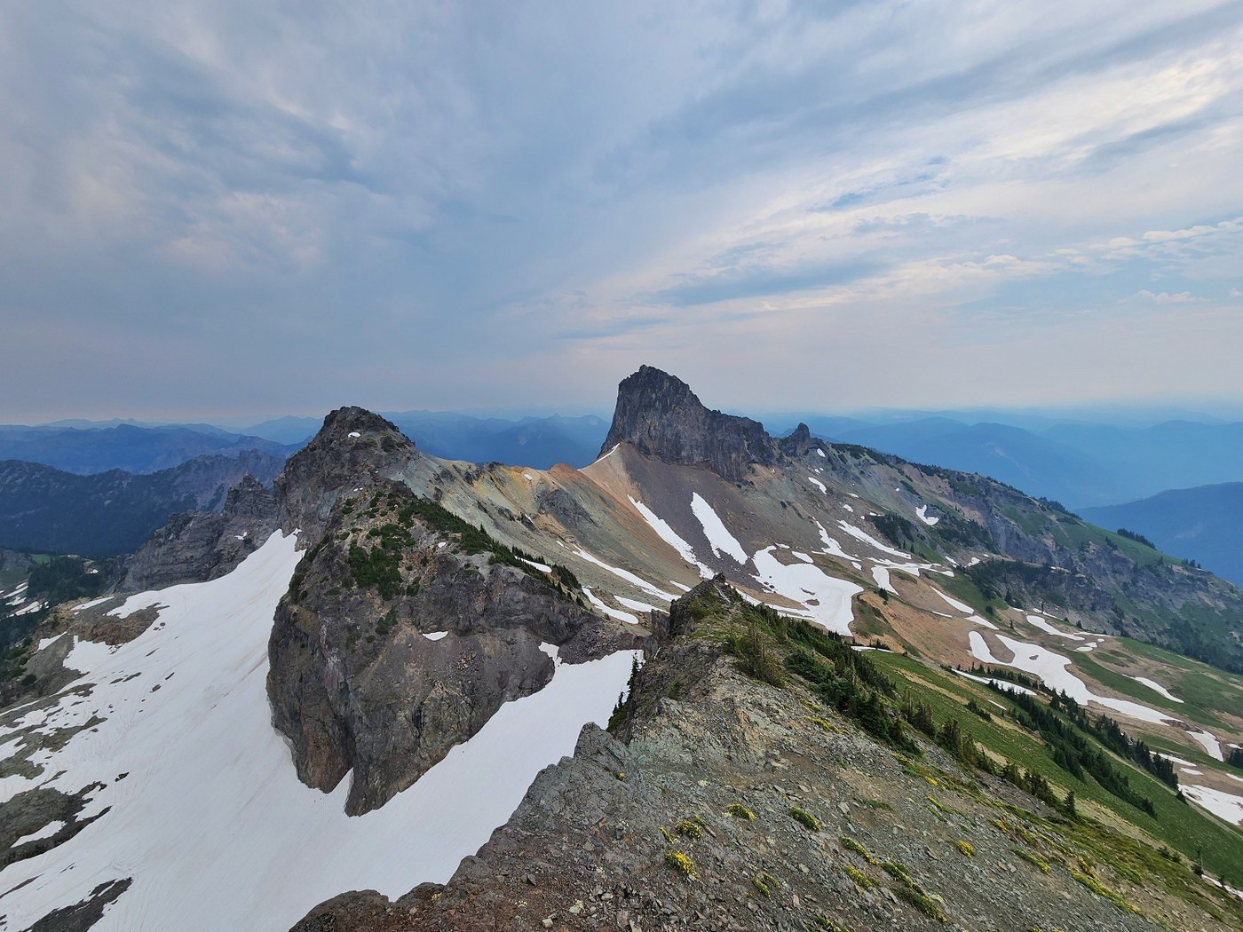 Banshee Peak is an off-trail summit that requires advanced mountaineering skill to reach. It lies east of Mount Rainier.