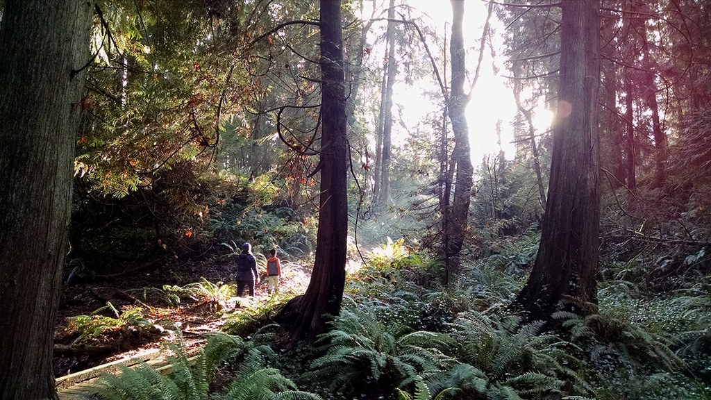 This park is a great place to hang out in, but it can also become part of a longer journey thanks to a couple connections with other trails. Along the northern perimeter you will find the start of the Fairy Dell Trail, which follows a ravine to a tidal inlet; and in the southeast corner the Forest to Sky Trail, which connects to Grand Forest West.