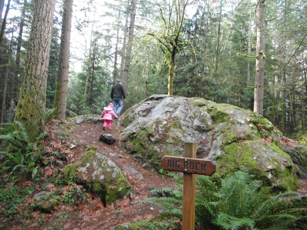 The trails here vary between soft-surface dirt and gravel. The obvious trails and good signage ensures you won't get lost. In addition to the cool second-growth forest of the Big Rock Trail, the rest of Big Rock Park varies from woods to meadows to wetlands. Take your time and explore it thoroughly.
