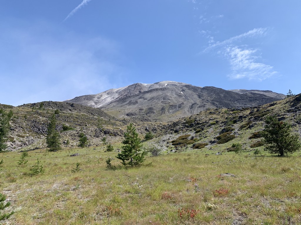 Winding through the large boulders on a well worn path, a clear day will provide you will a wide open view of Mount St. Helens and all its glory. Leaving the moonscape of boulder field, enter into a meadow of lush beargrass, short pine trees, huckleberry bushes and wild strawberries.