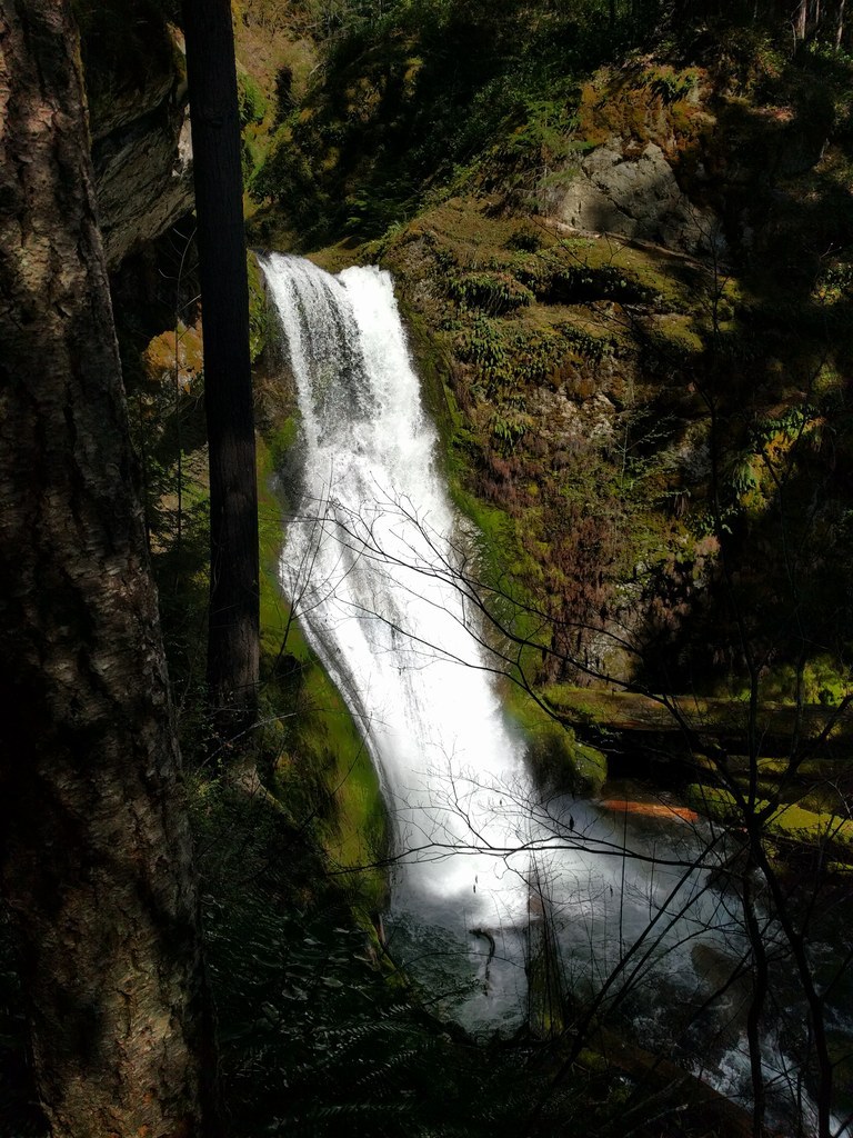 Just a short hike upstream from Forest Road 23 leads you to with a spectacular view of a 30-foot waterfall in the Cowlitz River Valley. From the road, the trail climbs through a mixed conifer hardwood forest, continues along a steep side slope before ending within 20 feet of the waterfall.
