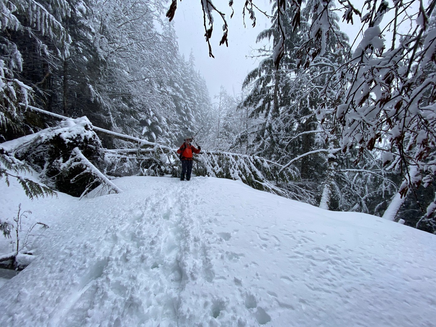 This lake is tucked away in the hills on the north side of the Mountain Loop Highway. The trail itself follows the route of a decommissioned forest road, so it is wide with a gentle grade.