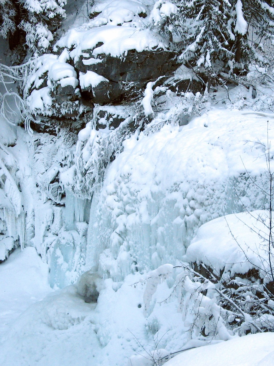 The summer trailhead facilities are usually unlocked, and the trail register is available. The trail to the falls starts to the left of the trailhead sign. However ,the route is not marked with signs or blazes, so understand your route and have a map -- simply following in someone's footsteps does not guarantee you'll arrive safely at your destination. Remember that it is not unusual to be breaking trail, knee deep in snow for the next 1.8 miles, which can be quite strenuous.