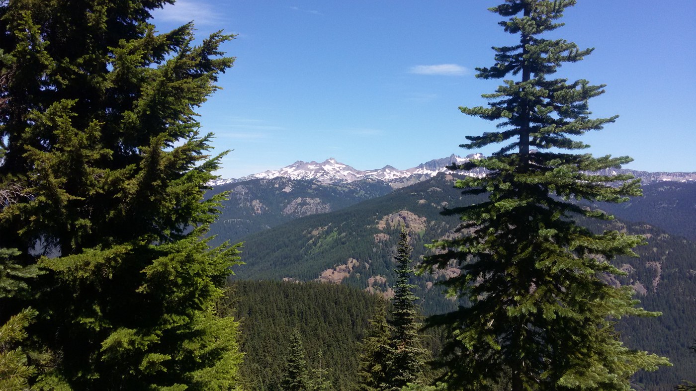 On your way back, peer through the trees to the south to see Mount St. Helens before descending back to your trailhead.