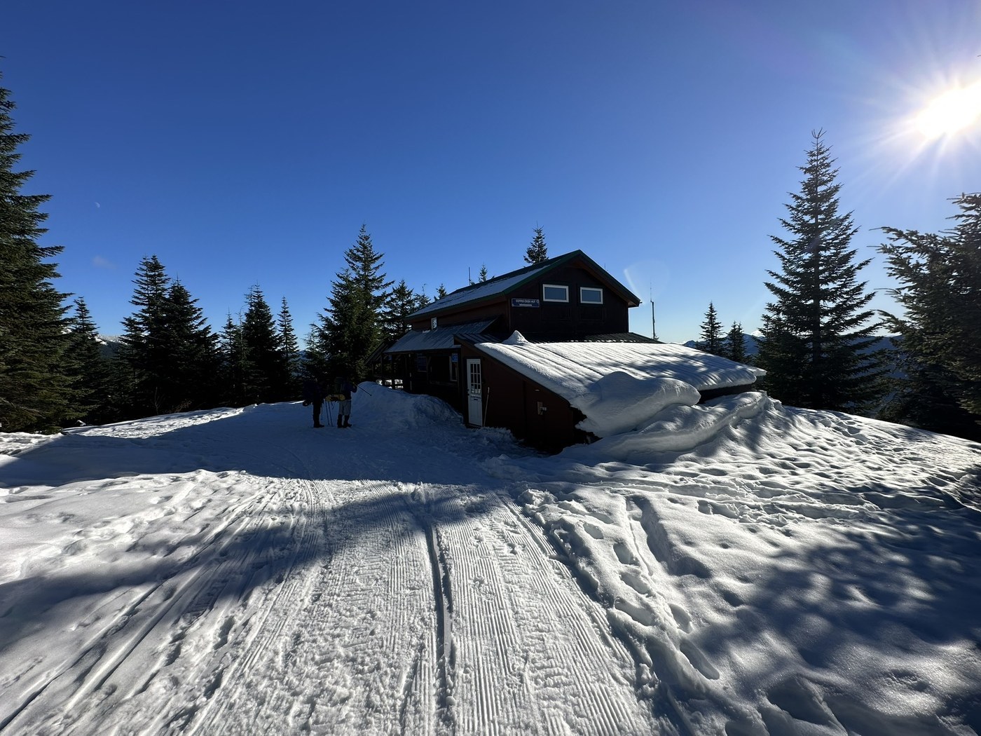 During the day, the heated hut, with its well-appointed kitchen and outdoor restroom, is open to the public and frequently staffed with volunteer ski patrollers on weekends. Overnight stays at the huts can be arranged with reservations and a nominal charge for a permit. Learn more about overnighting at the huts.