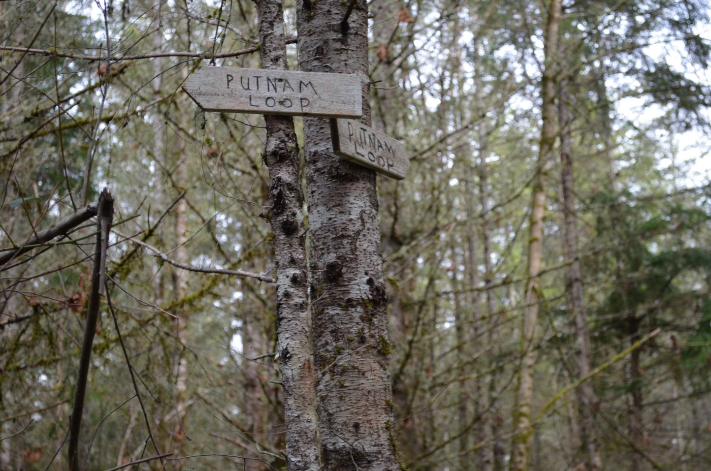 Follow this trail for another half-mile before taking a right to stay on Putnam Loop, and then a left at the next fork in 0.1 miles to avoid a trail that leads to the middle school. After 0.3 miles the trail crosses Summit Landsberg Road; jog slightly to the right to find the new trailhead across the road. Turn right at the first fork, as the trail meets a more recently logged area that’s bursting with new growth. Follow this unsigned trail about 0.2 miles until you reach a large access road.