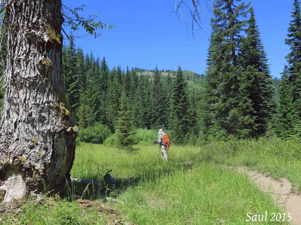 Dark Meadow Trail begins on Forest Road 23, then crosses East Canyon Creek. It passes through Douglas fir and Western Hemlock, before crossing Dark Creek (at mile 1.5), and climbing steeply toward the Dark Meadows area and Juniper Ridge Trail.