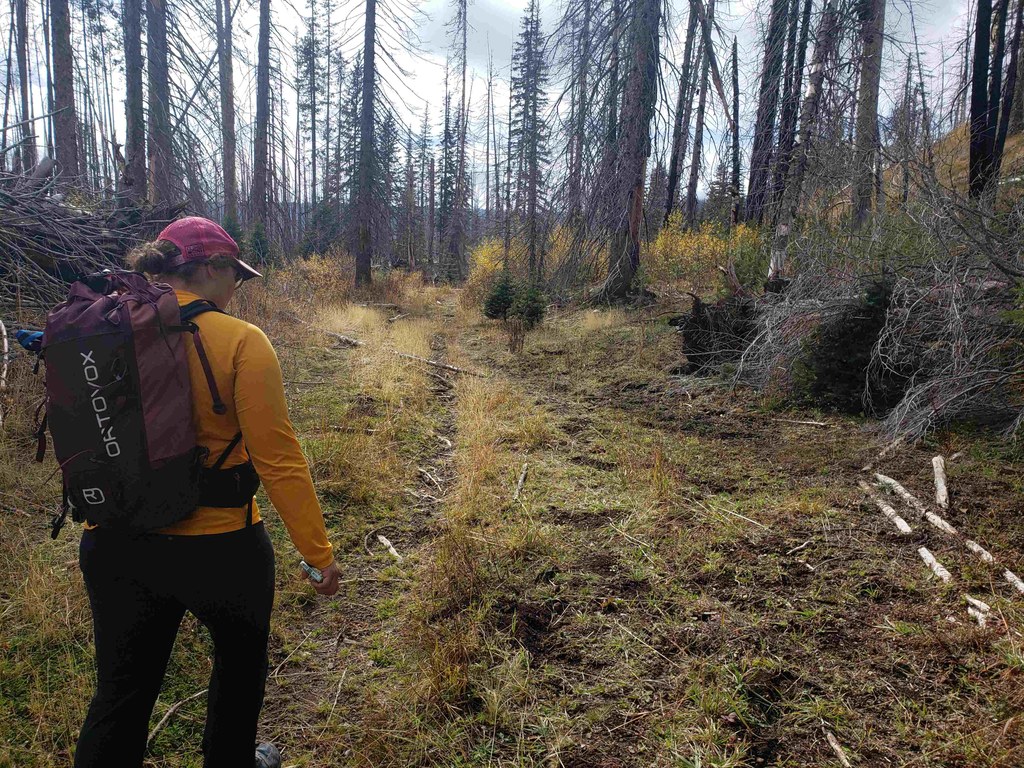 The views of the Wenatchee mountains as the trail runs parallel to Naneum Rim trail are particularly lovely, with lots of larches and interesting rocky sections. Elk and deer sign are common on this trail, so keep your eyes open for wildlife, particularly in the fall!