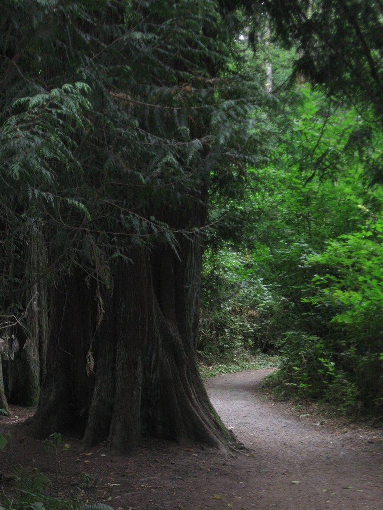 Some fairly large Douglas firs and redcedars occur along this part of the trail.