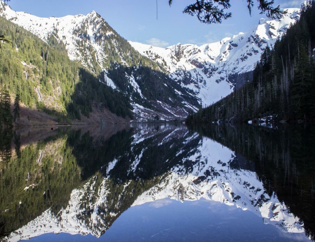 A nice hike with plenty of variety. Beautiful forest, a rushing creek, waterfalls of all shapes and sizes, history, and of course a large blue-green lake surrounded by snowy peaks. At 10.4 miles, it can be either a day-hike or a quick early season overnight. You won’t be alone, though – this is a popular trail with both hikers and backpackers.