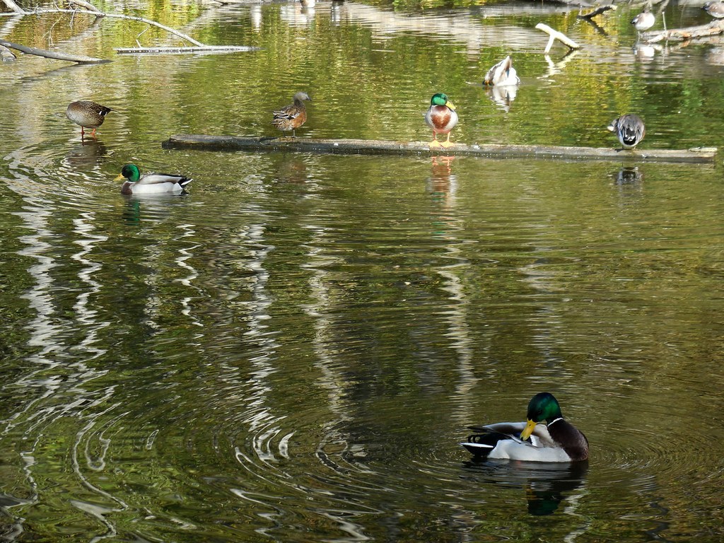 You may note a great blue heron standing quietly next to one of the ponds, or perched in a tree nearby. Also, there are beavers in the area, and it is not unusual to note a tree trunk that has been gnawed, leaving wood chips strewn beneath it. The action mostly takes place at night, so you probably won't see the beaver.