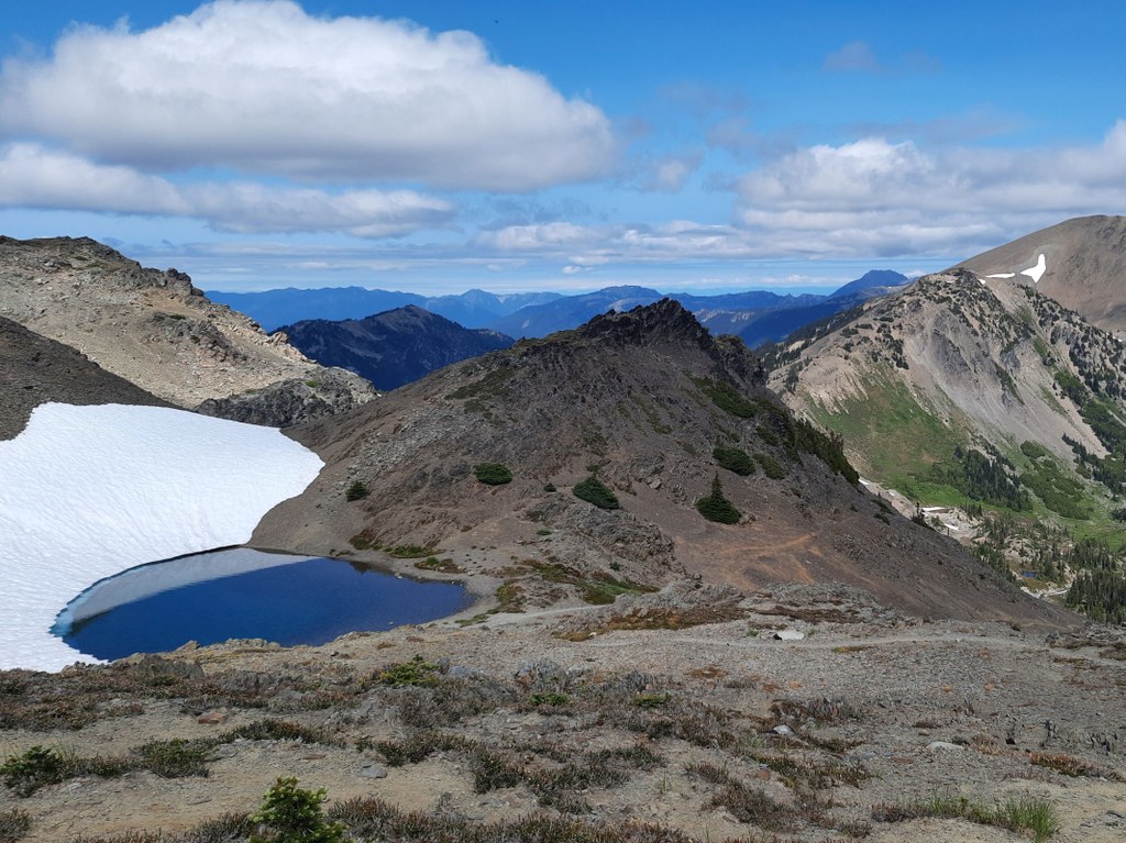 Past Gladys Lake, there's a stunning basin leading up towards Grand Creek. It's a 1.2 mile climb from Gladys to the pass itself. Note that this basin can hang onto snow, so check trip reports and have traction with you if you're going out early in the season.