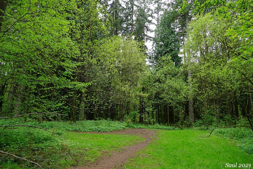The trails are wide and well-maintained, but expect to find muddy conditions no matter the time of year. It is a mostly flat hike, with a gentle 10' incline on the northern half. There are a couple different access points, but the best is through the Lucky Memorial off-leash dog park, because of the parking lot.