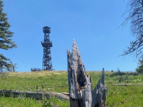 Hiking can be done clockwise or counter to no real benefit in either direction. Unfortunately, access to the lookout tower was discontinued years ago. The tower stands 82 feet above, with just a 7-foot-by-7-foot cab on top. In the midst of the summer heat, that cab must be unbearable. Walking the loop trail has many dry environment plants and flowers native to this harsh climate.