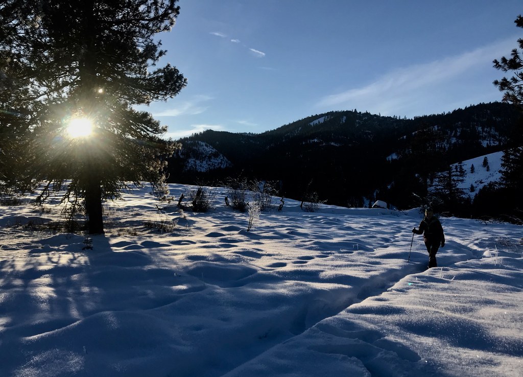 The Sun Mountain Lodge ski and snowshoe trail system is part of the large Methow Valley groomed winter recreation system. Sun Mountain is aptly named as it frequently sits just above a lower layer of clouds which can keep the valley gloomy and cold.