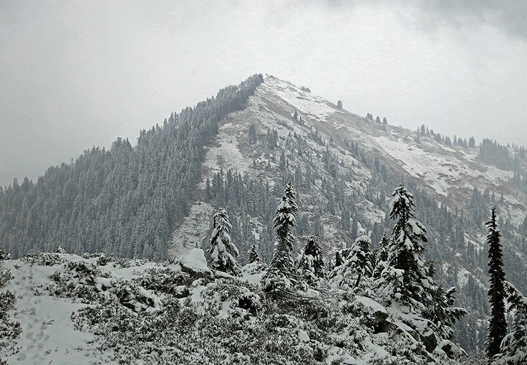 The most direct way to the top is via the Nason Ridge Saddle route. Follow a very faint climbers trail that occasionally disappears altogether. When this happens, stay on top of the ridge to stay on the route. But be careful - the ridge can vary in width from a couple hundred feet wide to a knife edge just a couple of feet across.