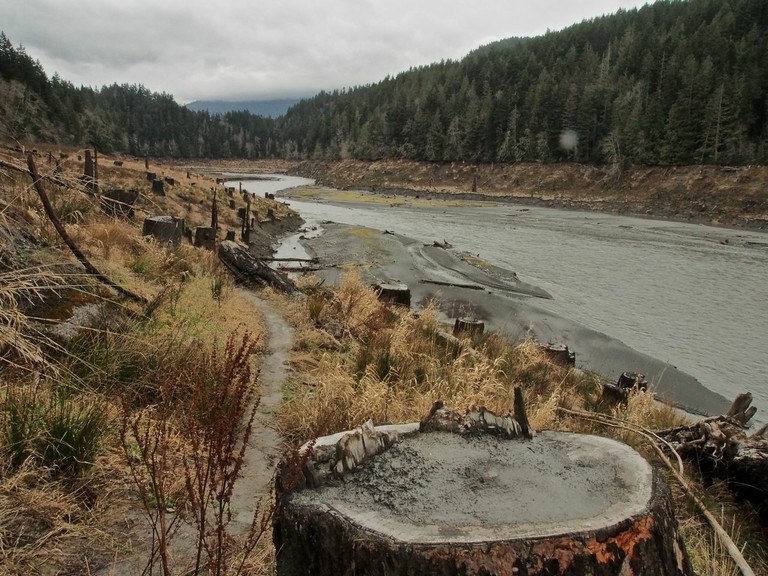 In addition to an overlook on the dam and Lake Aldwell, hikers can enjoy a view of the Elwha flowing on its way to the Strait of Juan de Fuca.