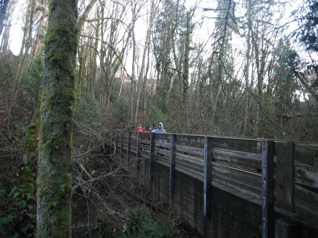 In the 1880s the Taylor Sawmill operated in this area. When nearby sources were depleted and the logging business moved elsewhere the land that wasn't salable for housing development, was deeded to the city of Seattle. At the southern end of the trail, where the gorge narrows and the trail ends; there are remnants of water diversion structures; likely remains from the mill.