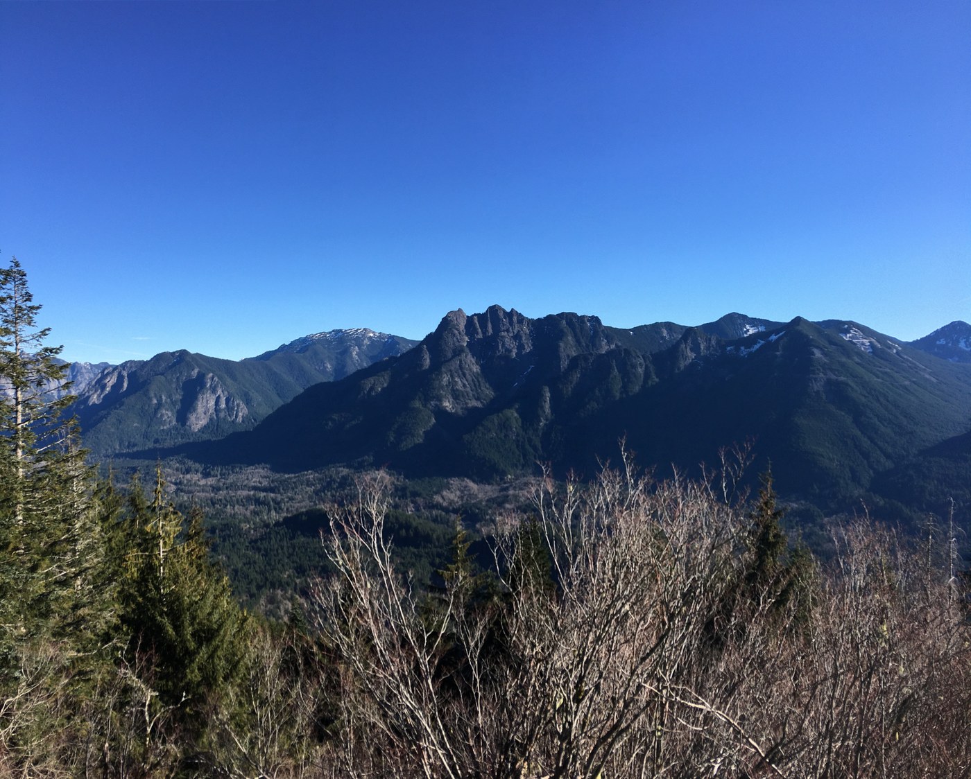 Arrive at the much larger opening and rest easy somewhere on the wide array of mossy talus. Enjoy expansive views of the Middle Fork Snoqualmie Valley, with its peaks towering above the river and road you travelled in on.
