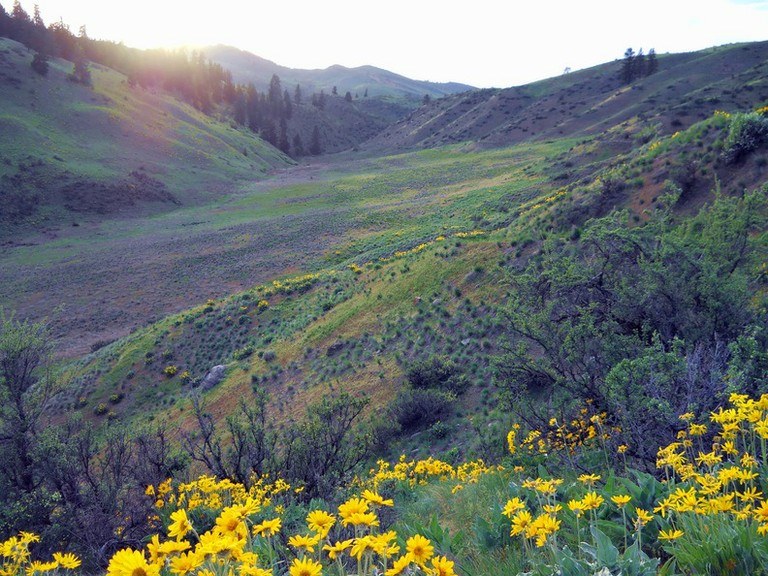 This trail littered with sagebrush and balsamroot trail is just across the road from the Lightning Creek campground in the Methow Valley. In late summer, fragrant flowers surround the area, intoxicating curious hikers.