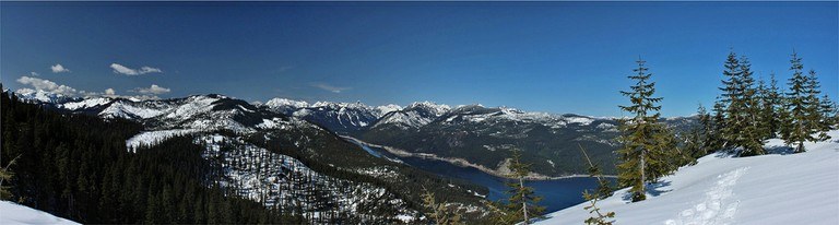 A moderate snowshoe hike in Snoqualmie Pass. Summit features views of almost all the Snoqualmie area peaks and Keechelus Lake.