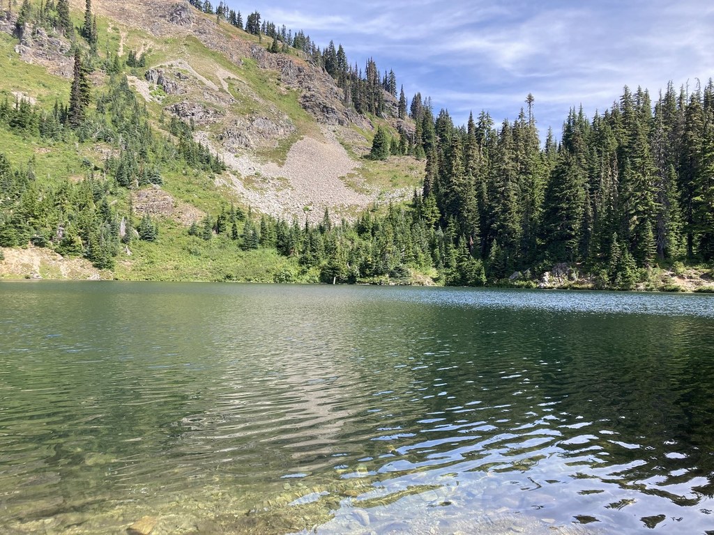 Though the Margaret Lake trail is not heavily trafficked, it is extremely well-maintained and thick brush is minimal. The trail leads up through old clearcuts before entering the forest. Steady but not too steep, it switchbacks until reaching the junction for Margaret Lake at just over two miles and 1,500 feet of elevation gain. You gain another 300 feet of elevation coming back from the lake to this junction.