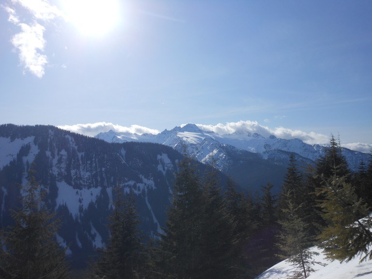 This snowshoe route follows Forest Road 38 at the end of the Middle Fork Nooksack Valley.