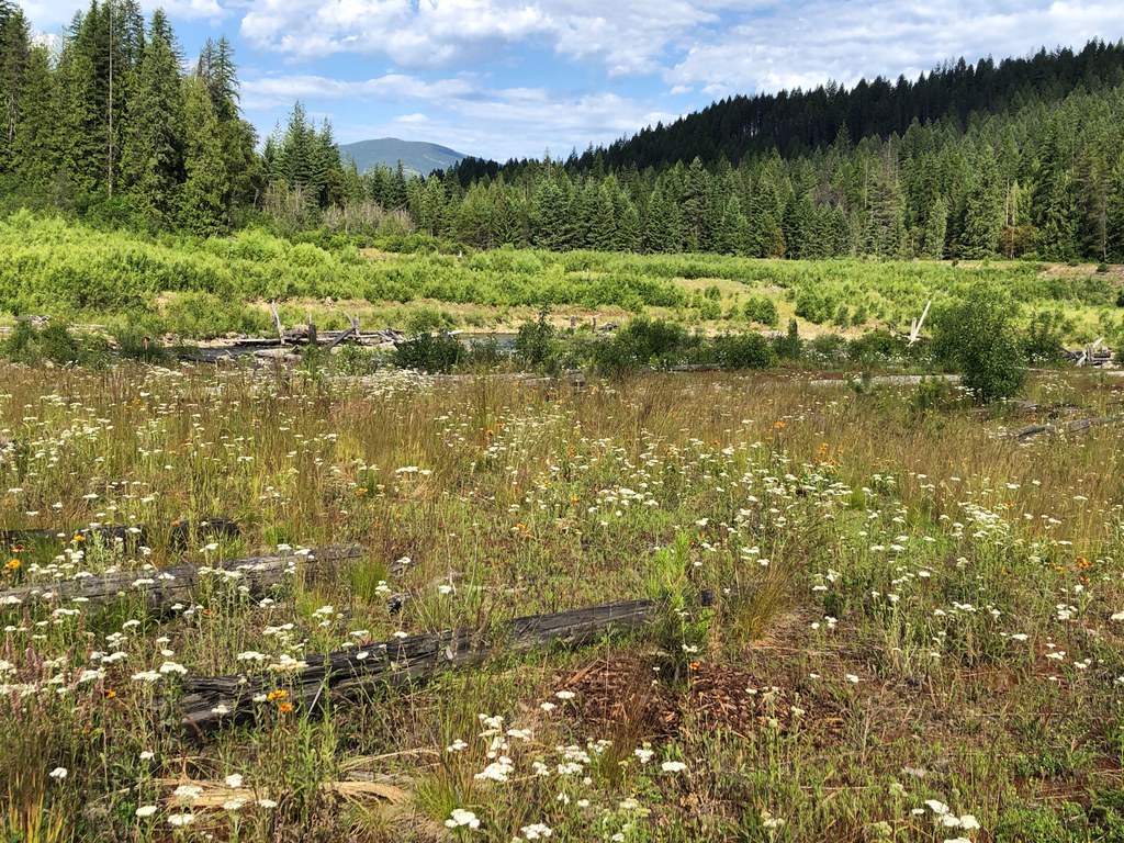 The first thing you need to know is that there is no longer a Mill Pond, despite what your topo map may show you. The dam that once impounded Sullivan Creek was removed in 2017 and habitat restoration followed. The site now offers accessible hiking trails in the tranquil northeastern corner of Washington State. Mill Pond Flume Trail is a 0.6 mile interpretive loop that showcases several historic structures, while the 0.9-mile Floodplain Loop takes you through reborn meadows and young groves of willow and aspen.