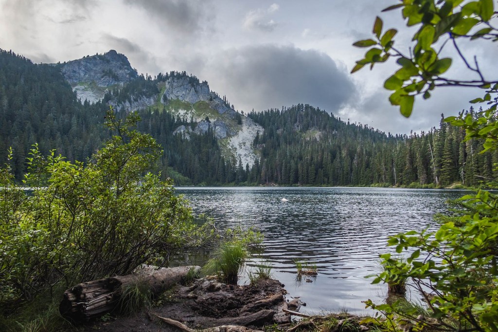 Turn east, and follow the trail to Mirror Lakes, about a mile from the Wonderland Trail. Even if it's a cloudy day and you won't get the reflection, it's worth a side trip in the summer and fall, since huckleberries line the trail on both sides and you can stuff your mouth as well as any water bottles or other containers you may have brought for just that purpose.