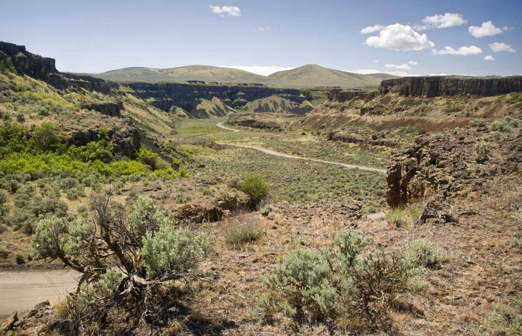 The coulees of central Washington are box-shaped valleys cut into basalt bedrock by a sequence of catastrophic ice-age floods. The Nature Conservancy maintains a 3,600 acre preserve at the northern end of Moses Coulee. The preserve comprises intact shrub steppe habitat, two ephemeral streams, and several seasonal waterfalls. Vertical basalt cliffs make up the sides of the coulee, and sagebrush and bunchgrass carpet the floor.