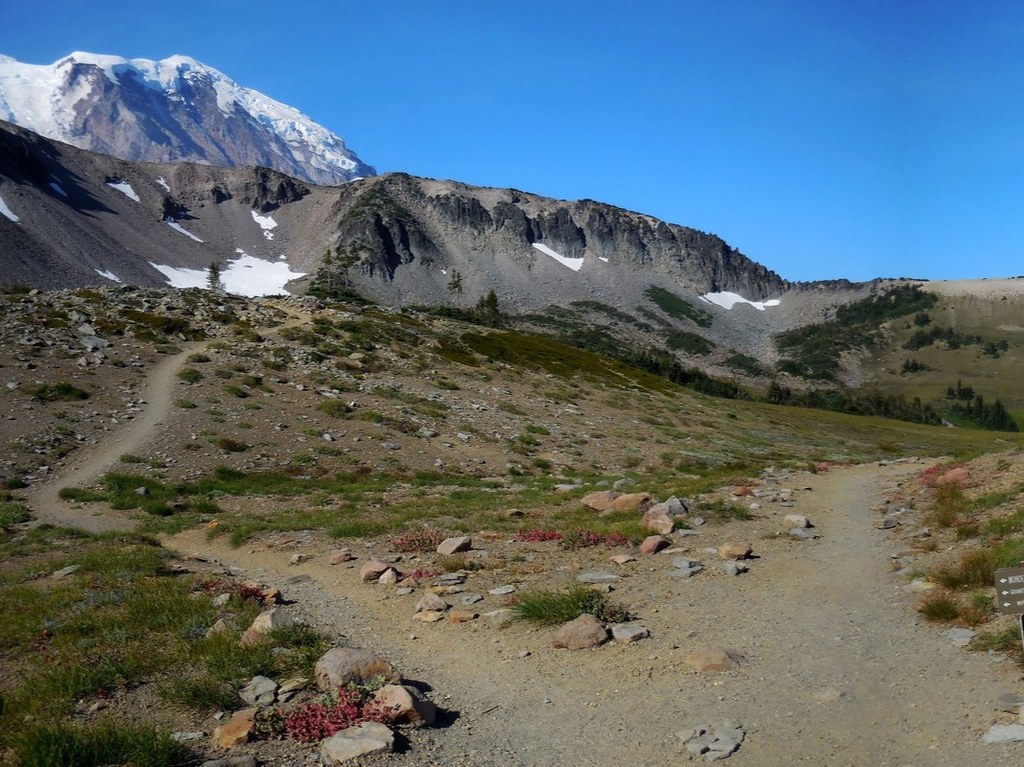It's best to start at Sunrise, since you'll need to get permits from the ranger station at White River in advance of beginning this hike. And since it's a loop, you can do it clockwise or counterclockwise. This entry describes a clockwise route.