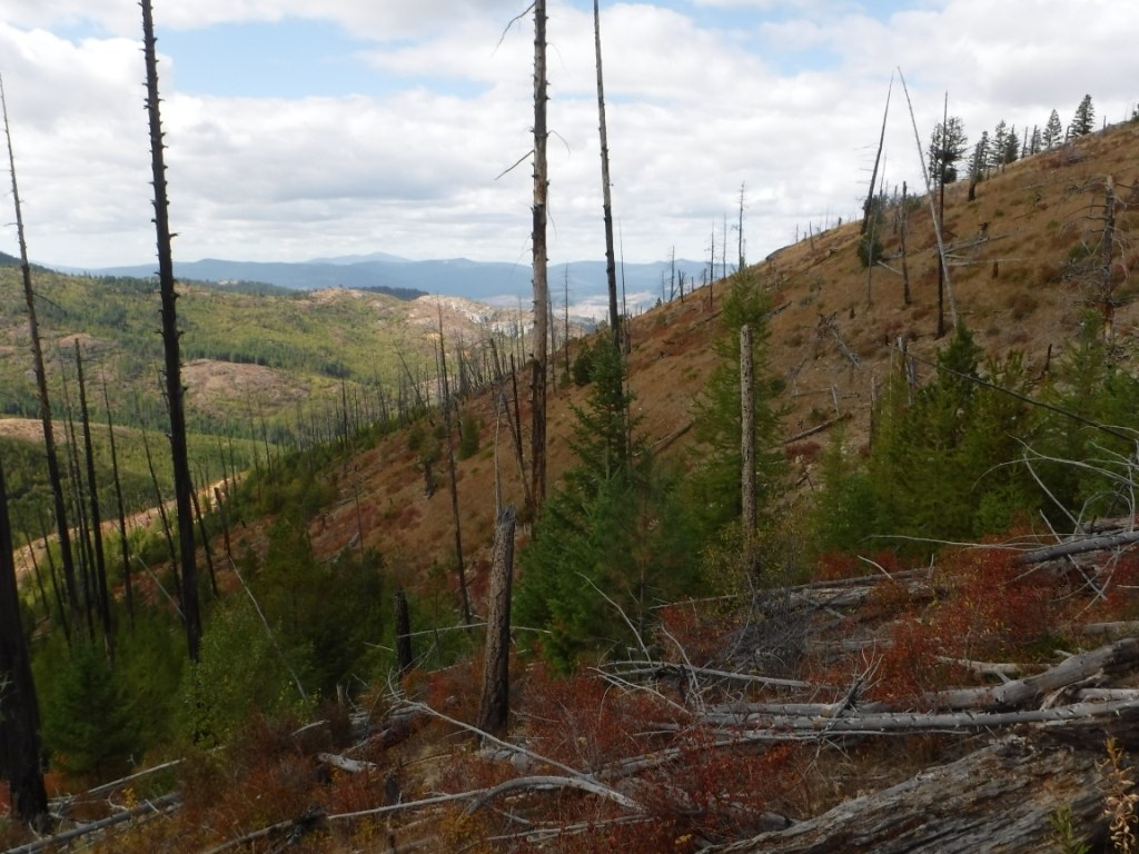 A hike here quickly reveals just how treacherous stagecoach travel must have been. Despite being an old road grade, portions of the route are both steep and rocky. The route offers excellent views toward the west when the skies are clear. This area has been impacted by several wildfires over the years, resulting in many standing snags along the trail and a dense young lodgepole forest returning. Wildflowers line the trail in the summer, and the surrounding hillsides turn golden in fall as the larch and aspen turn color.