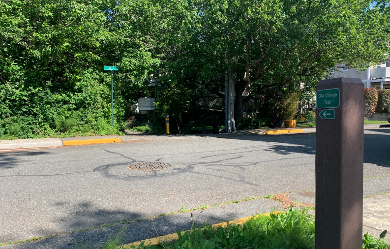 The Old Village trail starts in the corner of Maritime Heritage Park near the fish hatchery and leads you northwest through the Lettered Streets neighborhood. The trail itself is paved but closed to cars offering an alternative to sidewalks as you walk through the city.