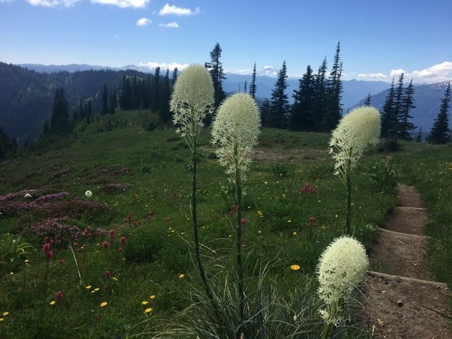 Ollalie means “berry” in Chinook jargon and refers to the true star of this trail; tasty huckleberries are abundant later in the season. Vine maple and cascade azalea can also offer bursts of contrasting color to the verdant environs.