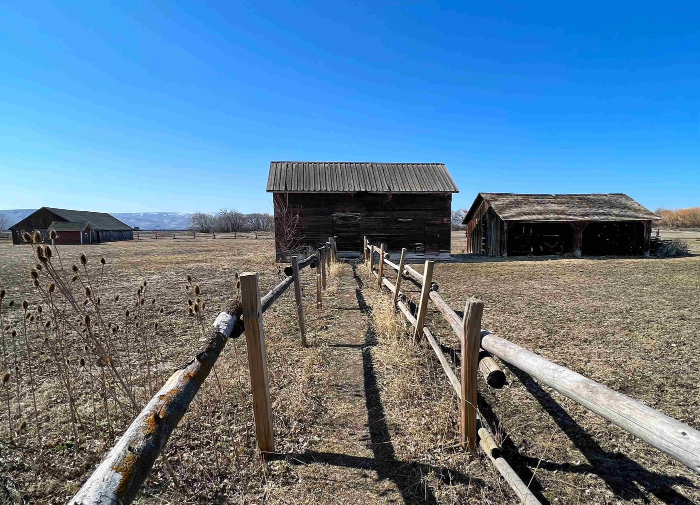 Begin your hike on the south side of the historic Seaton Schoolhouse where a signpost marks the beginning of the Coleman Creek Interpretive Trail. Pass between barns on your left and the willow-lined creek on your right, and soon a metal bridge will appear over the creek. Although the trail does not continue on the other side, it’s worth a stop here to take in the scenery.