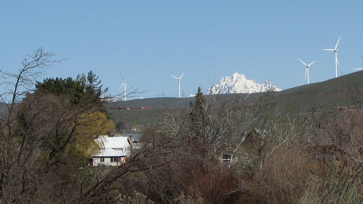 To the west of the Thorp Trailhead is 2.8 miles of farm and ranchland, with the nearby West Side Canal for irrigation. Across the river, the wind turbines of the Kittitas Valley Wind Farm turn in the breeze and Mount Stuart peeks over the ridge.