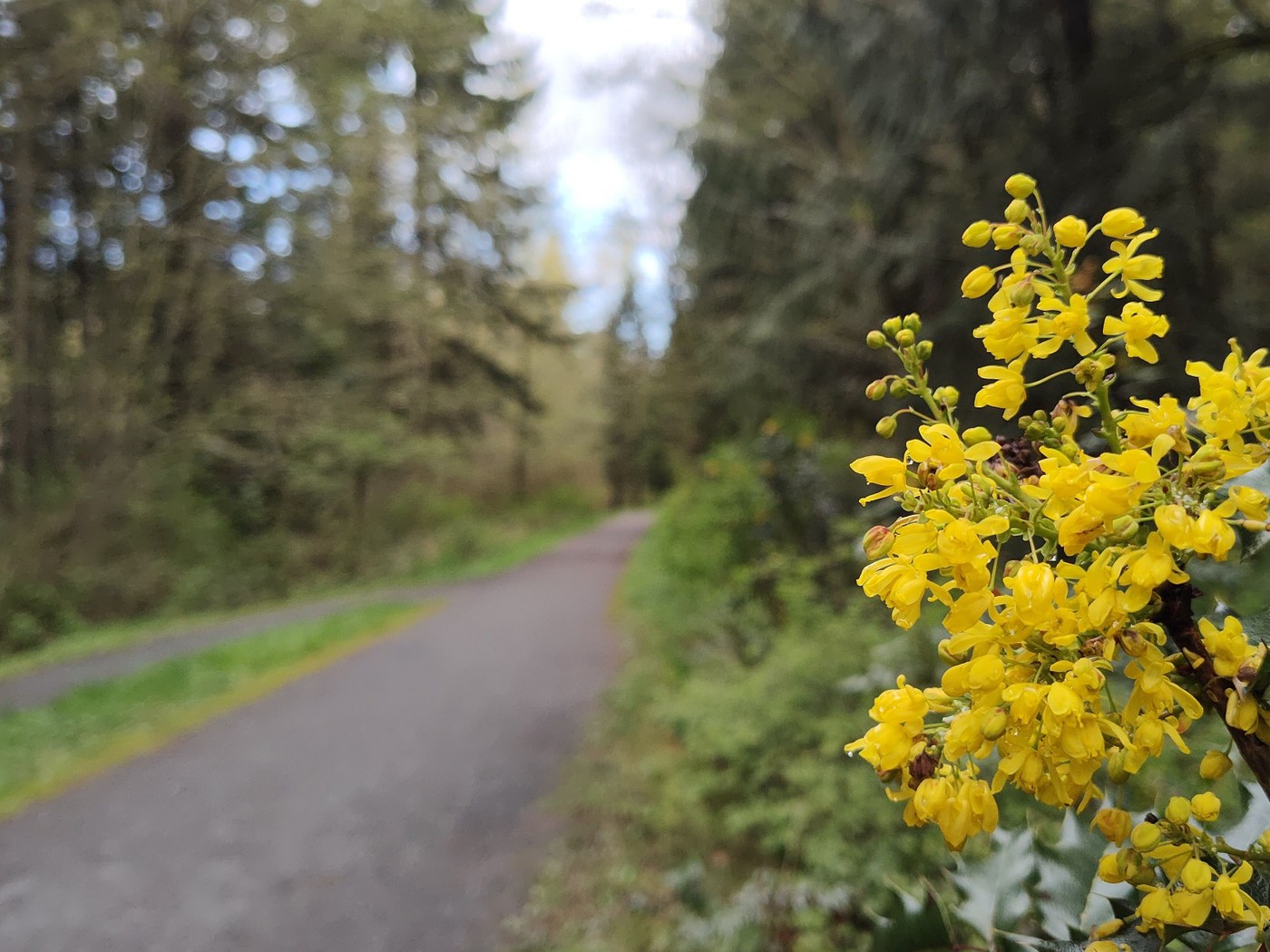 Return the way you came and connect back with the main trail. As you walk through the forest, take note of the varied habitats provided by the woods, the lake and the wetlands surrounding it. This section of the trail is a great place to catch a glimpse of spotted towhees as they flit in and out of the trees. In the spring, keep an eye out for Pacific bleeding heart along the side of the trail, as well as the occasional trillium.