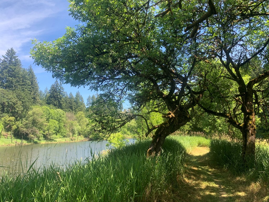 This trail is an excellent diversion for families camping with young children, or a leg-stretcher for I-5 travelers, but other trails meander all around the park. If you're interested in extending your stay, head back down the spur trail to the second fork you encountered. Rather than retracing your steps, continue straight on a trail that follows the wide, slow-moving East Fork Lewis River for nearly half a mile.