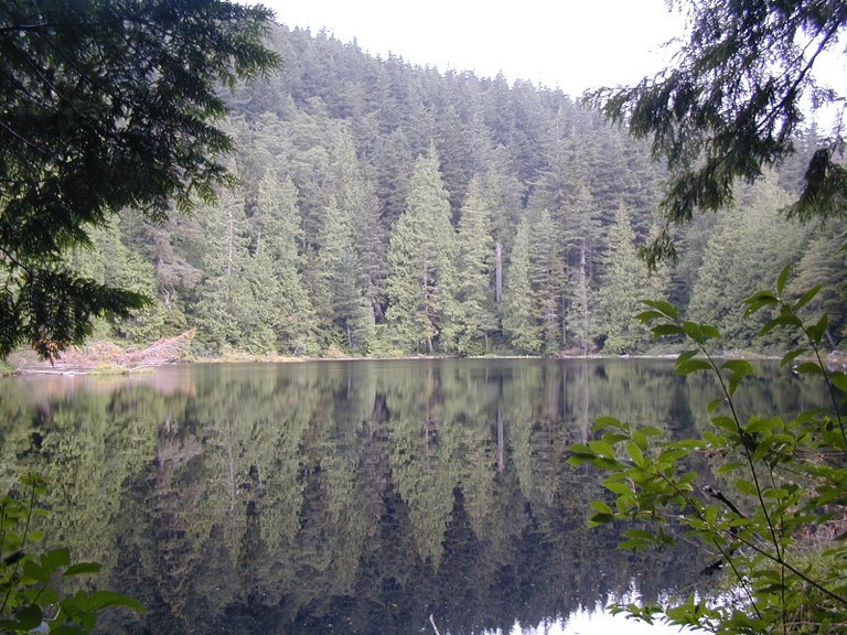 From the trailhead off Old Samish Way, climb a moderate stretch of old dirt road that gradually turns into a trail for 1.6 miles until it levels off at 1,600 feet. Arrive at a signed junction that turns left to Cedar and Pine Lakes or right on the Hemlock Trail, which takes you north, connecting with lots of other trails heading toward Bellingham.