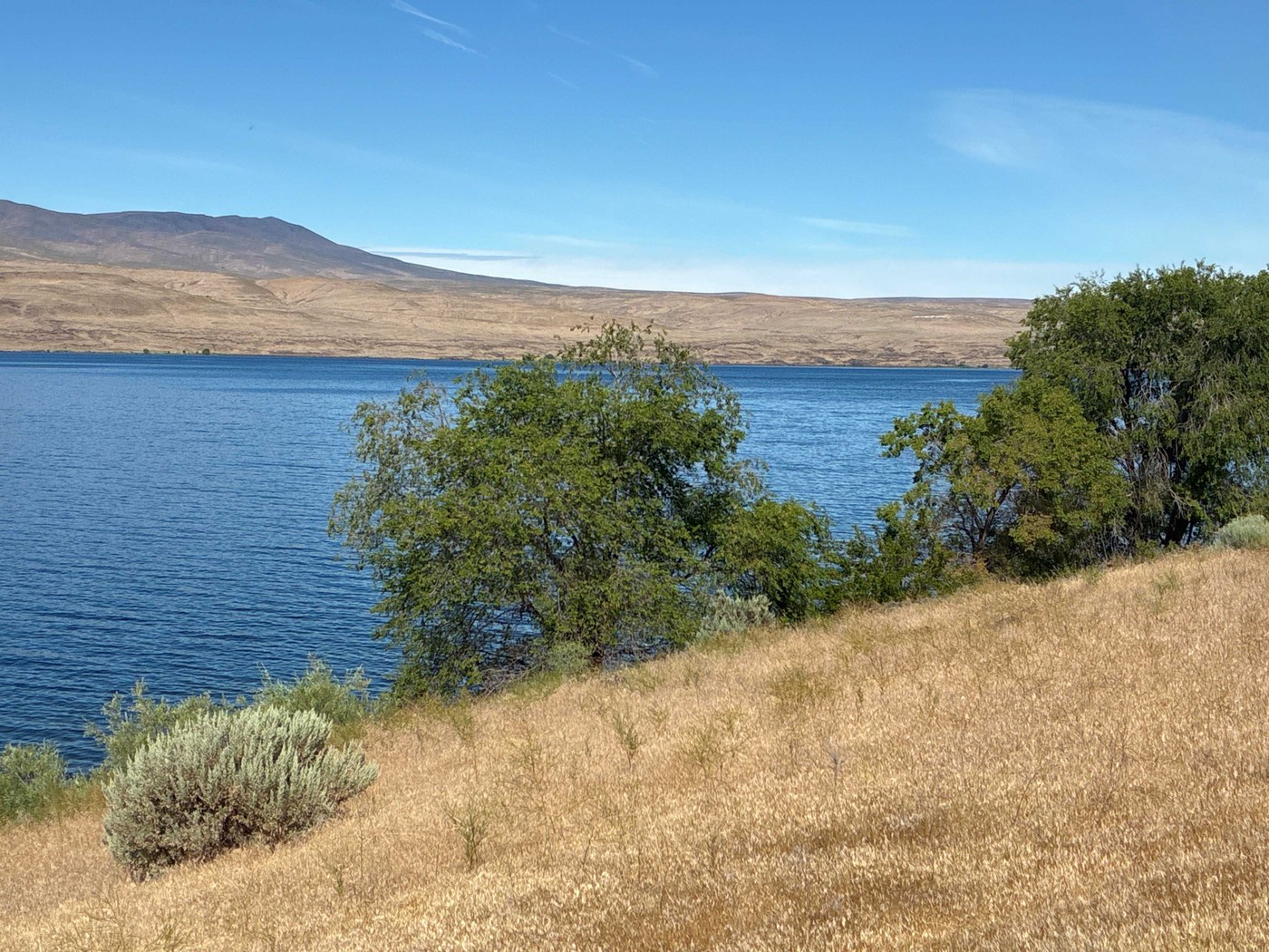 The trail passes through long expanses of beautiful shrub-steppe habitat. Outside of the recreation area park, there is very little shade except in places where cottonwoods and willows grow beside the river.