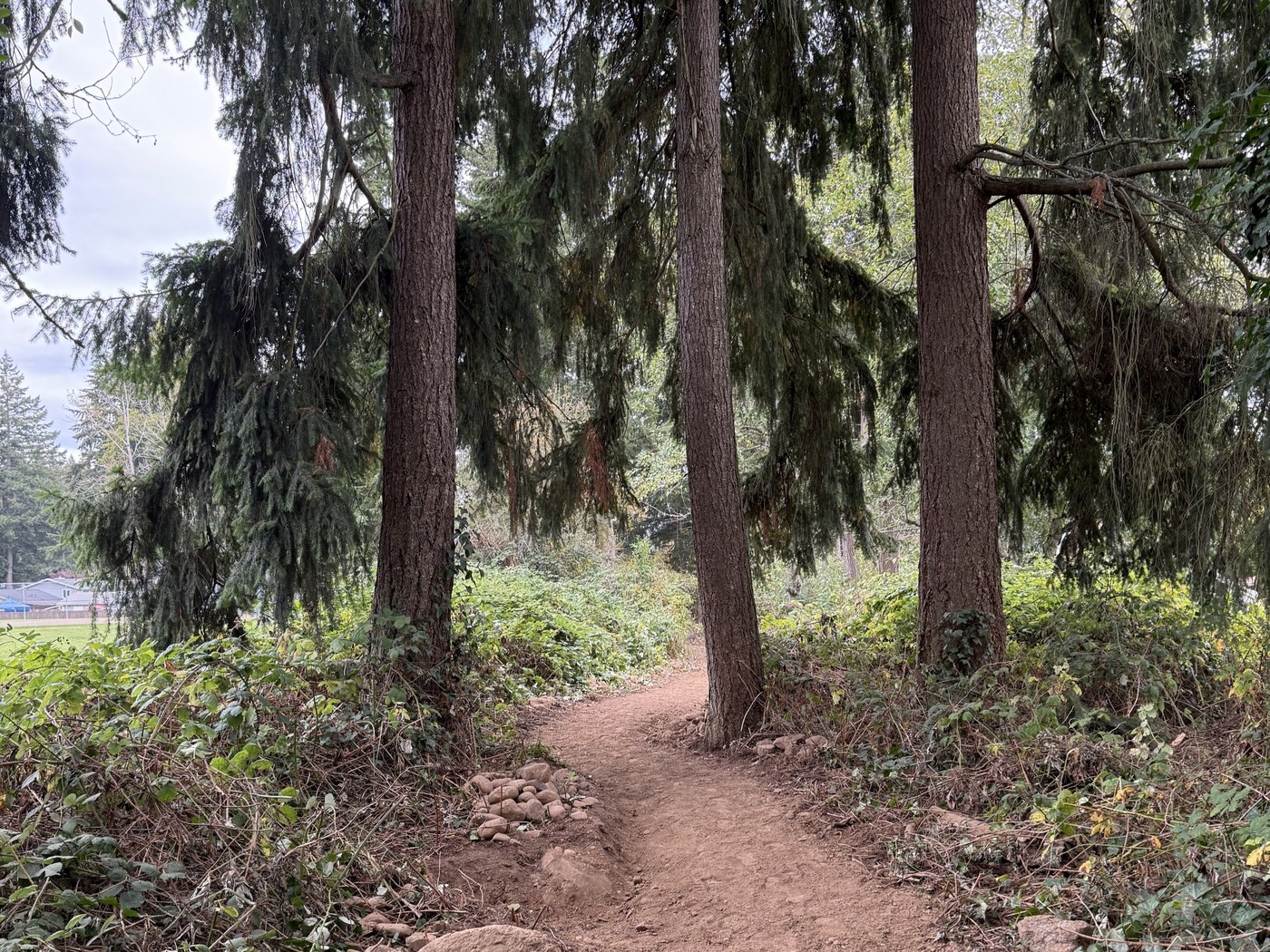 Rainier Woods Park in Puyallup is a small, 9-acre park that offers several possible activities for visitors — including an off-leash dog park, softball field, basketball courts, playground and picnic area — and a small wooded area with short hiking trails that WTA has helped maintain.