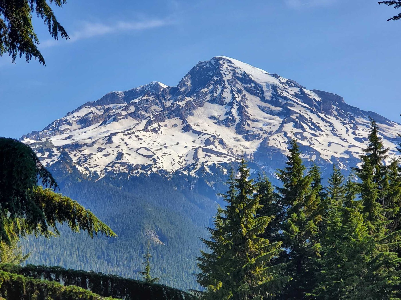The trail meets up with the Wonderland Trail 1.2 miles from the view of Rainier. Turn right and head downhill on steeper terrain than the ridgeline traverse. In 1.9 miles, you’ll be at Longmire again. Be sure to check out the rest of the Trail of the Shadows to cool off and learn a little about the plants growing in the national park.