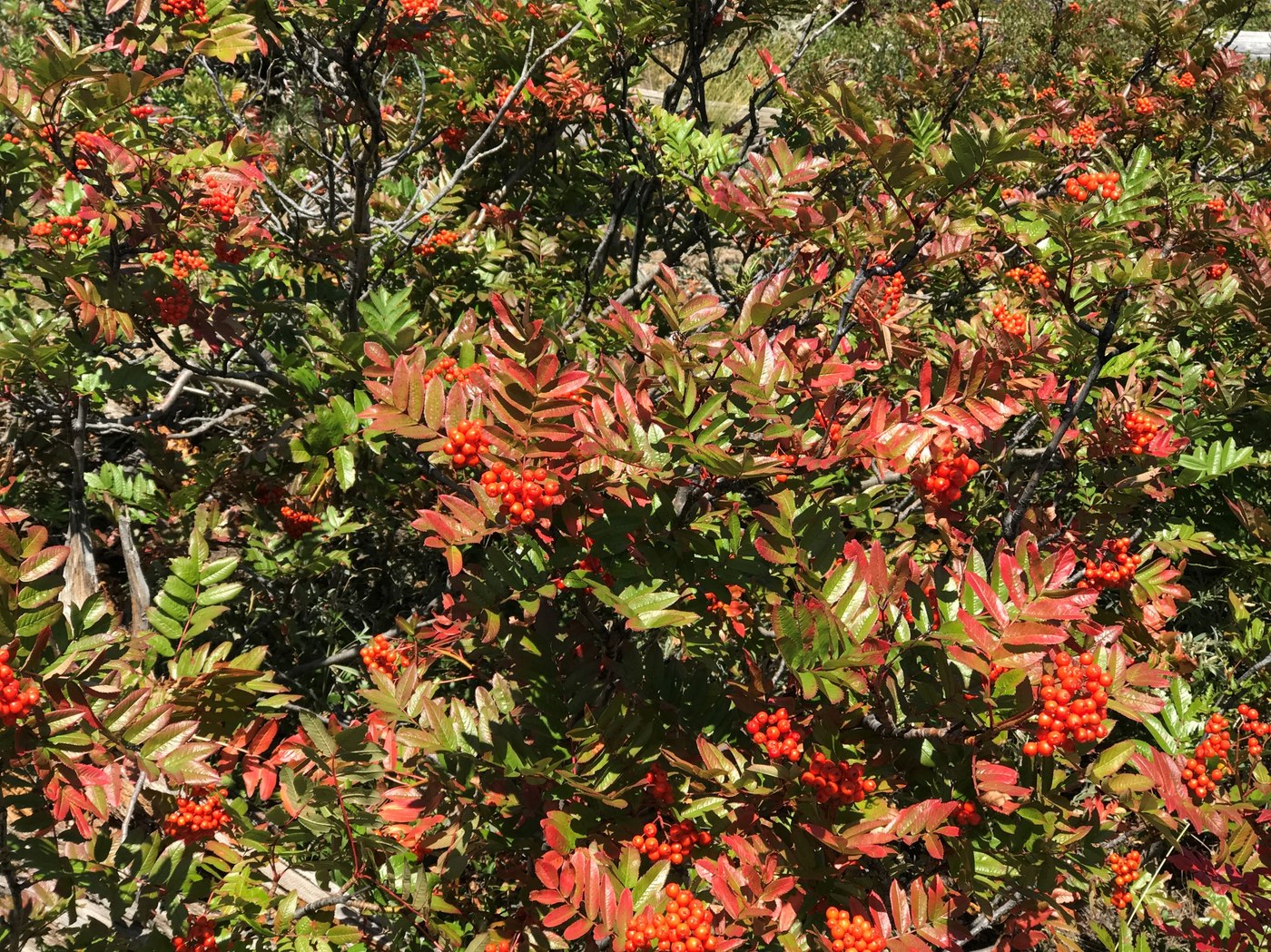 The trail continues for another three-quarters of a mile around the south side of aptly named Round Mountain. There is not a track to the top, and no need for one; it really should be named Round Hill, since the lower summit is forested across the top and there are no views. On the other hand, there are good wildflowers in July and August and vivid fall colors in autumn.