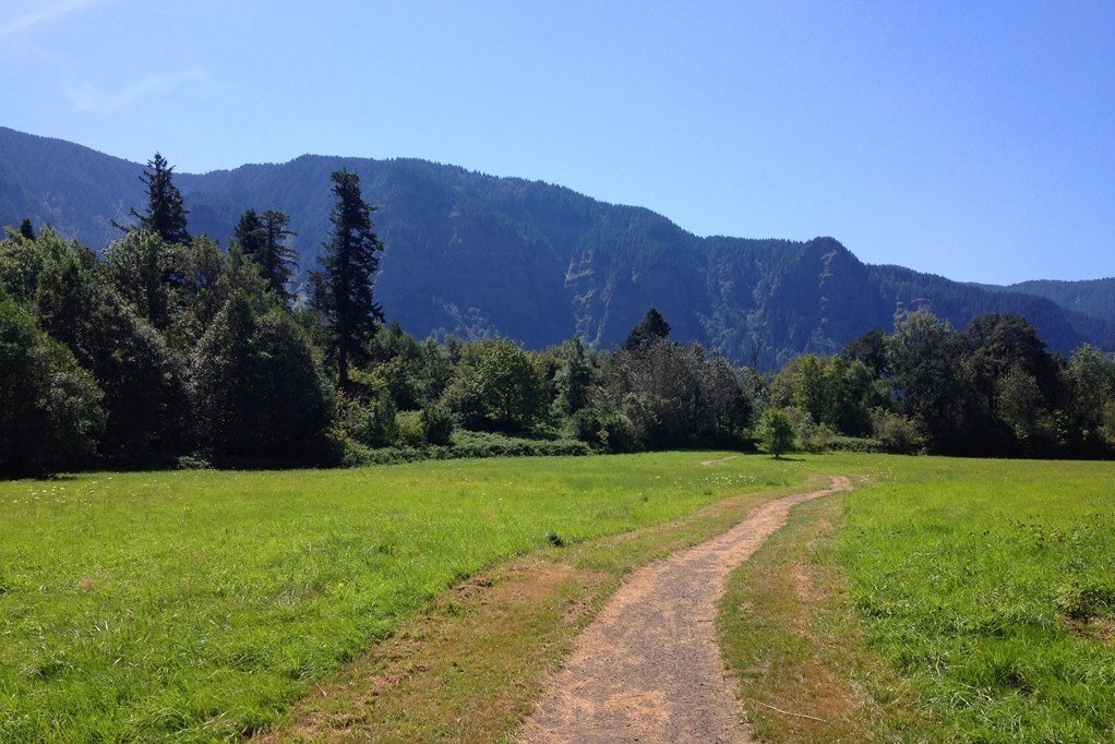 You'll find an old, moss-encrusted bench near the river and a picnic table that's in much better shape. As you hike along the floodplain, views of the mighty Columbia River and the Oregon side of the Gorge open up. Eventually loop back around and find yourself back at your car.
