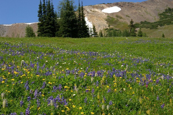Get to know the area by trying to identify nearby peaks and the bright array of colorful wildflowers. Revel in Indian paintbrush, yellow aster, lupine, and countless other varieties as you gaze upon the lush fields below you. In autumn, stately larch groves add their color to the landscape, and in spring, babbling brooks accompany hikers on their way.