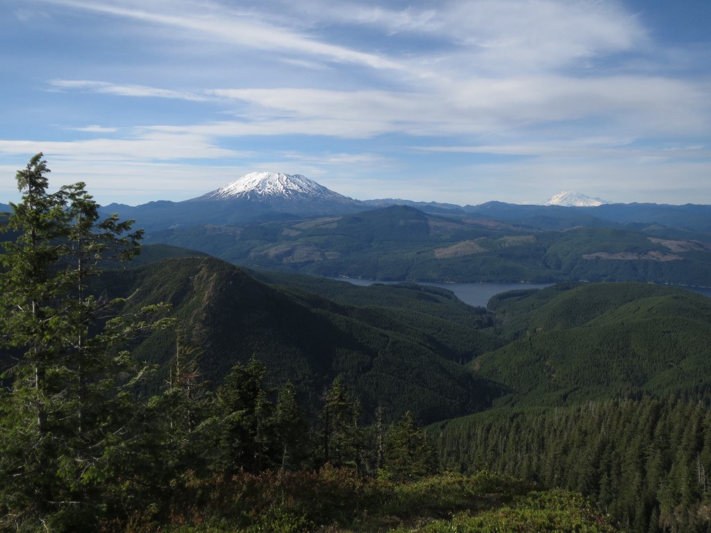 Continue to a clearing with stellar views of Mount St. Helens and the Swift Reservoir before picking up real trail again. One last bit of climbing gains the shark-fin summit ridge of Siouxon Peak at 8.1 miles. Take the narrow, brushy side trail to the 4,170-foot summit.