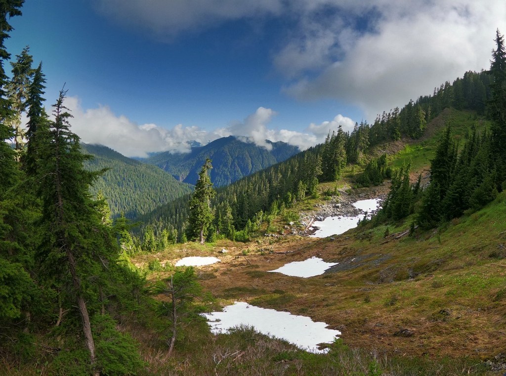 The Six Ridge Trail is a rugged route that traverses the South Fork to the North Fork of the Skokomish River. It is known for its solitude, meadows and grand mountain vistas. Hikers begin with a trek up the South Fork Skokomish River Trail to Sundown Pass and Lake. The Six Ridge Trail runs east along the crest for 11 miles before dropping down and terminating at the North Fork Skokomish River. It is then about six miles downriver to the Staircase Ranger Station.