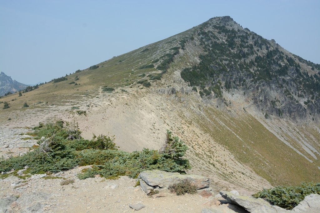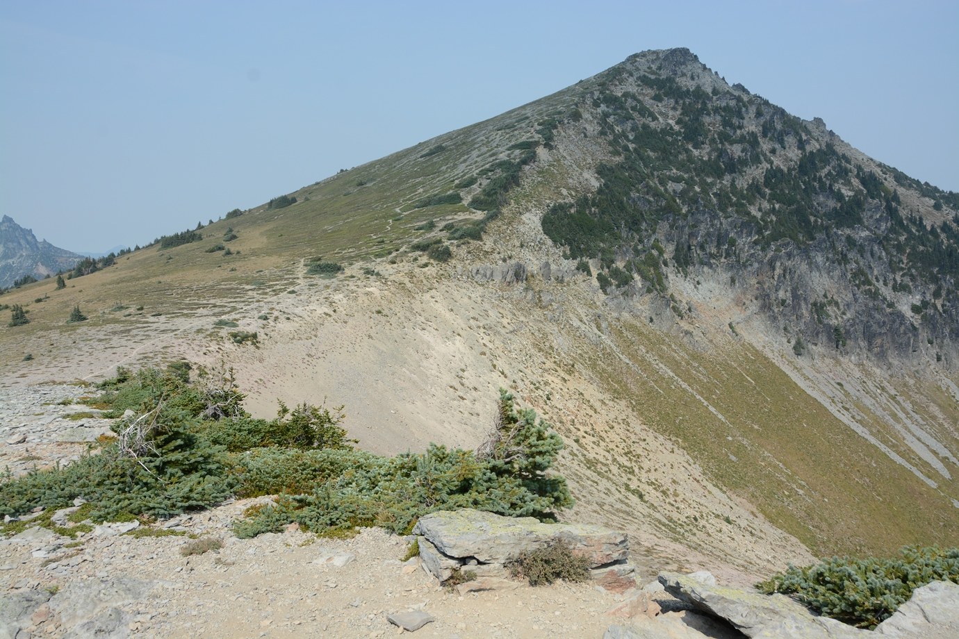 The trail goes through some minor ups and downs then climbs steadily up to a small pass at 3.4 miles. The rest of the route is in sight now. Continue up to the top of the ridge at 3.6 miles, a popular resting place.